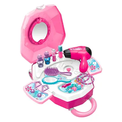 • Maleta Encantada Infantil Com Rodinhas Kit Fashion Beauty Angel Para Menina Com Espelho Secador