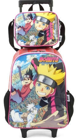 • MOCHILA CARRINHO LUXCEL BORUTO + LANCHEIRA VERMELHA