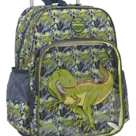 • Mochila Com Rodinhas + Lancheira Luxcel UP4YOU Dinossauro Verde IC37732UPVD
