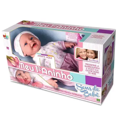 • Boneca Meu Primeiro Aninho com Sons de Bebê Milk Brinquedos