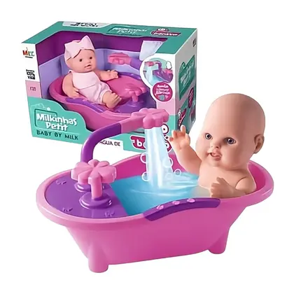 • Boneca Milkinhas Petit Banho 20 Cm Com Banheira Que Sai Água – Milk Brinquedos