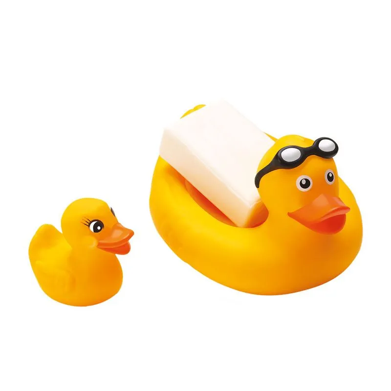 Deixe o momento do banho muito mais alegre e funcional com este kit encantador de patinhos! O conjunto inclui um porta-sabonete em formato de pato, com espaço para acomodar sabonete em barra, e um patinho pequeno para brincar na água.