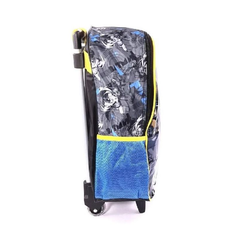 Proporcione para os seus filhos o que há de melhor em material escolar com a nova Mochila de Rodinhas do Batman com Lancheira Térmica A mochila de rodinhas possui compartimento com amplo espaço interno para as crianças levarem seus materiais, abertura em zíper, alça de mão, identificador personalizado e bolsos laterais em tela facilitando o uso de garrafinhas. A lancheira térmica possui alça menor de mão e alça maior com regulagem. O Batman chegou para colocar muito mais alegria na vida escolar do seu pequeno herói Características da Mochila de Rodinhas do Batman: - Confeccionada em 70% poliéster e 30% em PVC.- Carrinho e puxador embutido.- Compartimento principal com amplo espaço interno e fechamento em zíper duplo.- Bolsos laterais com redinhas.- Identificador personalizado.- Possui alça de mão.- Dimensões aproximadas: A:39cm x L:32 cm x P:14cm.- Produto original e licenciado DC Comics. Ficha Técnica da Mochila de Rodinhas do Batman: Marca: DC Comics.Fabricante: Luxcel.Modelo: IC37922BM-AM.Cor: Amarela.Código de barras: 6931759216548.Idade recomendada: A partir de 3 anos.Garantia de 30 dias contra defeitos de fábrica. Características da Lancheira Térmica do Batman: - Confeccionada em 70% poliéster e 30% em PVC.- Forro em 100%PVC. - Bolso térmico.- Identificador personalizado.- Dimensões aproximadas: A:18cm x L:23cm x P:9cm.- Possui alça de mão.- Possui alça com regulagem. Ficha Técnica da Lancheira Térmica do Batman: Marca: Dc Comics.Fabricante: Luxcel.Modelo: LA37923BM-AM.Cor: Amarela.Código de barras: 6931759216562.Idade recomendada: A partir de 3 anos.Garantia de 30 dias contra defeitos de fábrica.