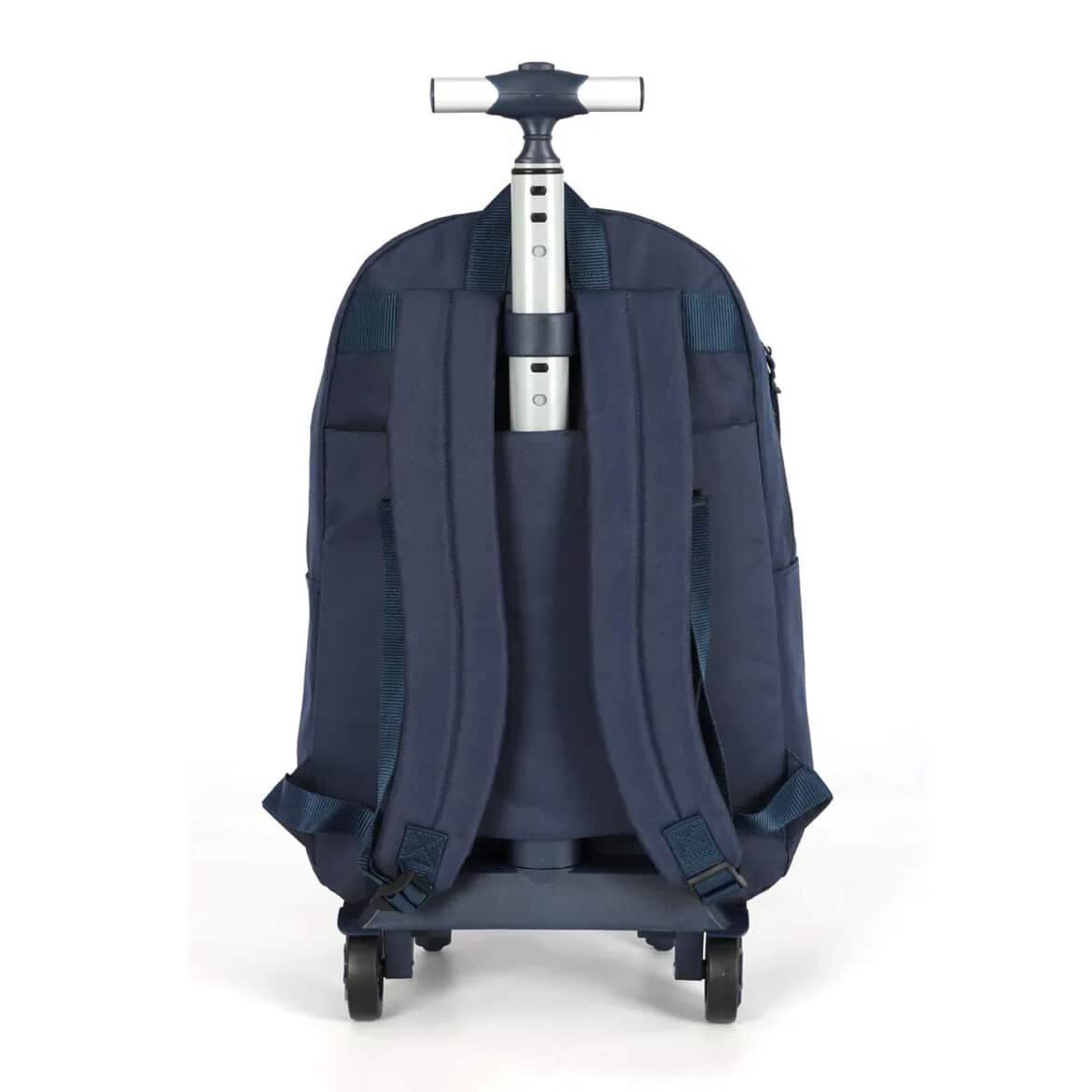 Equipada com rodinhas, a mochila proporciona deslocamento mais leve e confortável. As alças de costas ajustáveis permitem o uso nas costas quando necessário, oferecendo versatilidade no transporte.