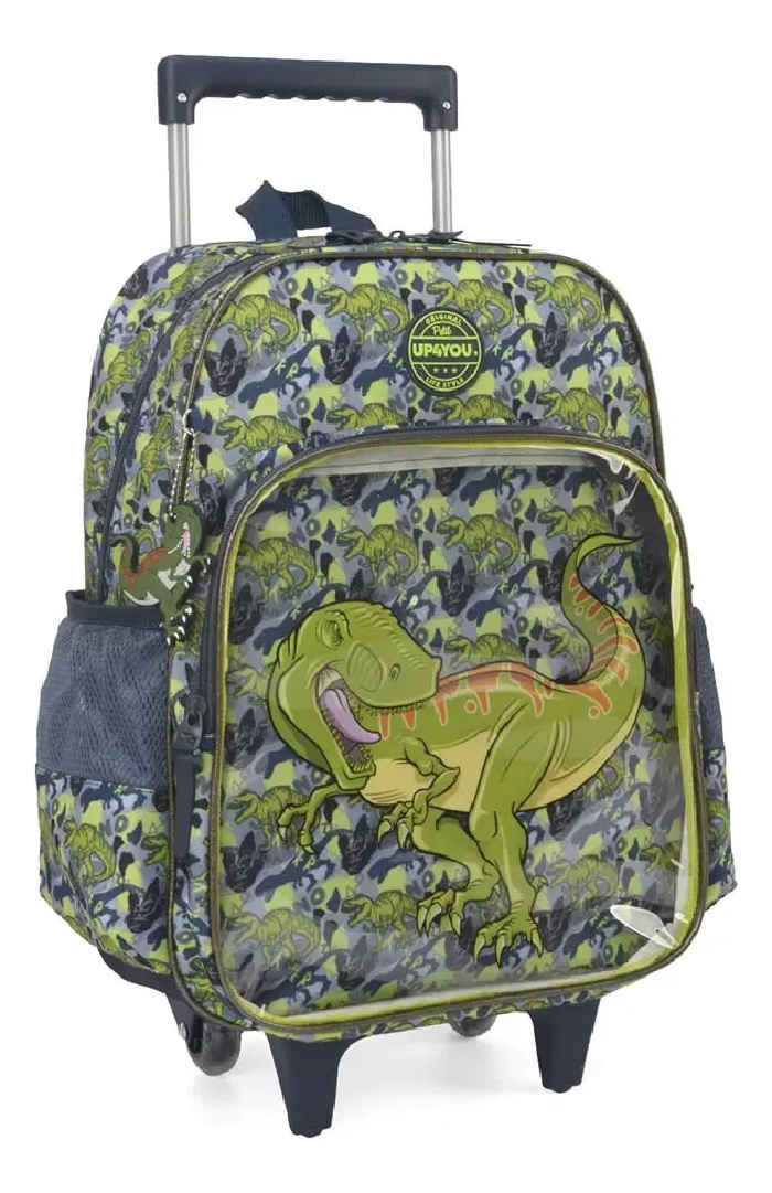 Mochila Com Rodinhas Luxcel UP4YOU Dinossauro Verde